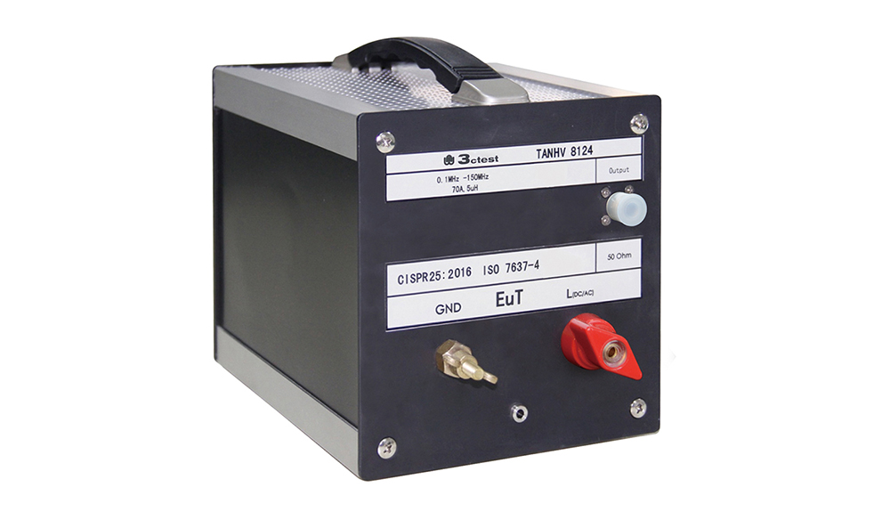 TANHV 8124高壓人工網(wǎng)絡用于新能源汽車高壓測試系統(tǒng)。頻率范圍100KHz-150MHz,測試電壓DC 1000V。符合CISPR 25:2016和ISO 7637-4標準要求。適用于傳導騷擾測試以及瞬態(tài)抗擾測試。